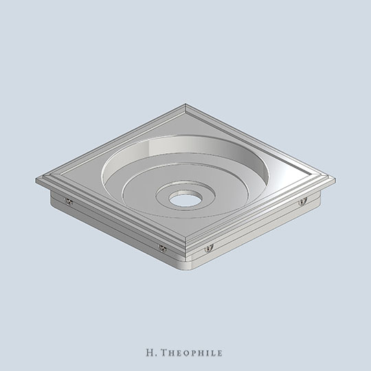 A handsome Neoclassical design, the HT9087 recessed pull offers a generous recessed area suitable to add a ring pull. Elegant perimeter detail completes the effect.