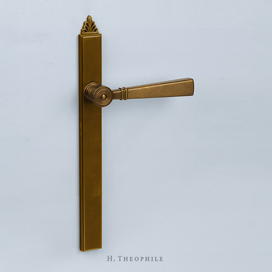 The HT6196 lever handle's face is demarcated by delicate banding, its harmonious overall form punctuated by a rich, concentric filigreed cap.