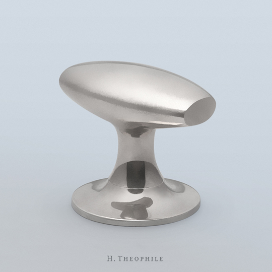 The HT4116 oval knob is based on an English handle ca.1940, featuring a distinctive oval form sliced at each end. The knob and rosette flow together almost seamlessly for a streamlined effect.